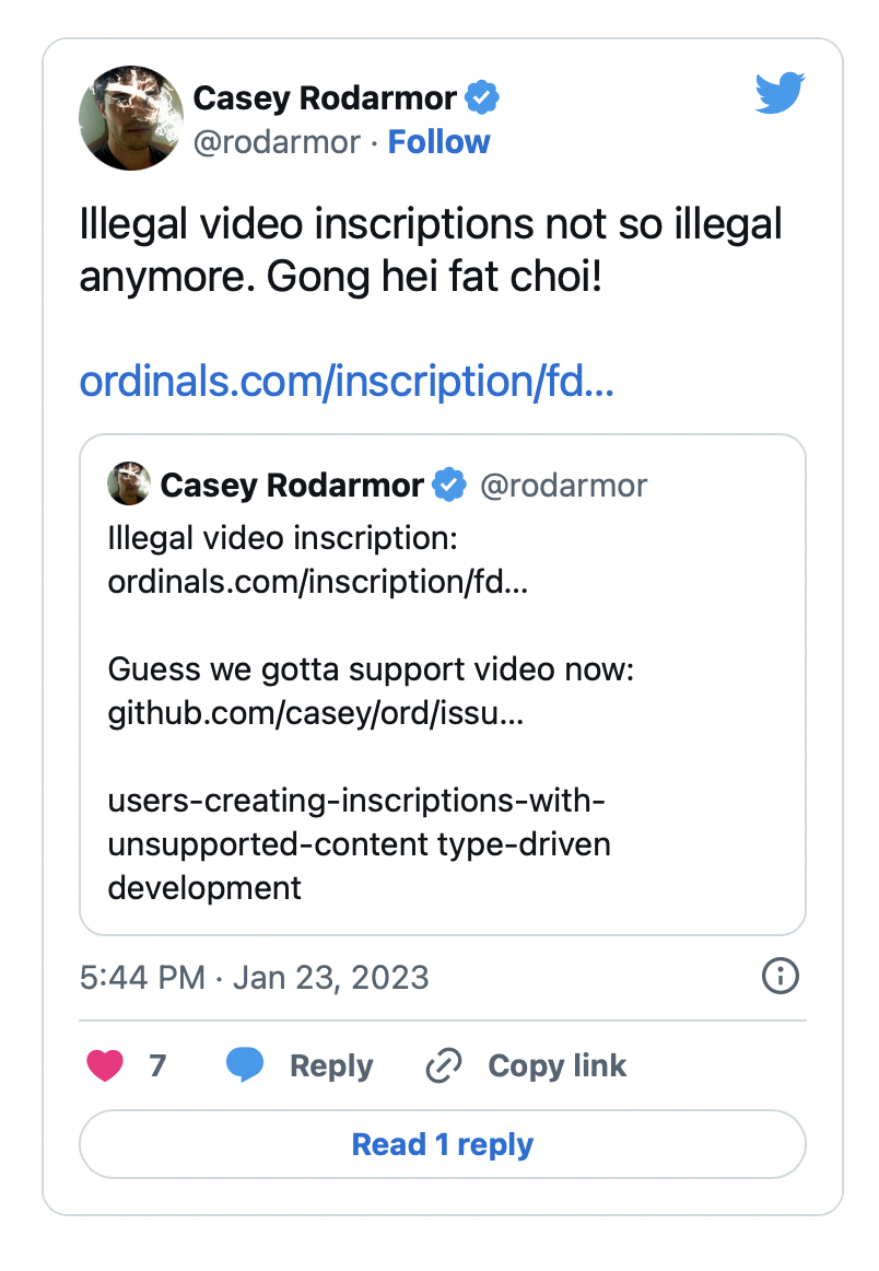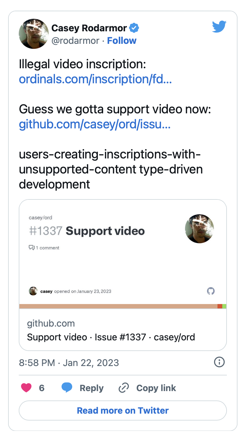 It was inscribed before video was officially supported by the protocol, and its success led to the addition of video support (see tweets below).